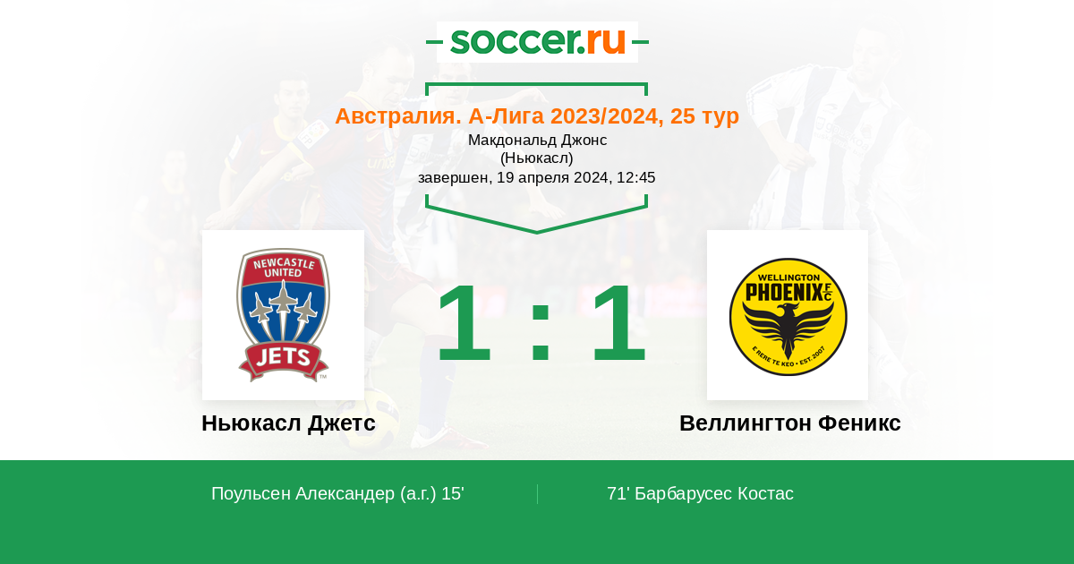 Протокол матча Ньюкасл Джетс против Веллингтон Феникс