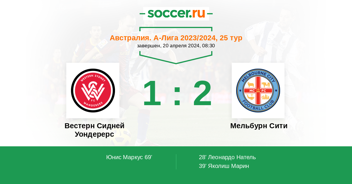 Протокол матча Вестерн Сидней Уондерерс против Мельбурн Сити