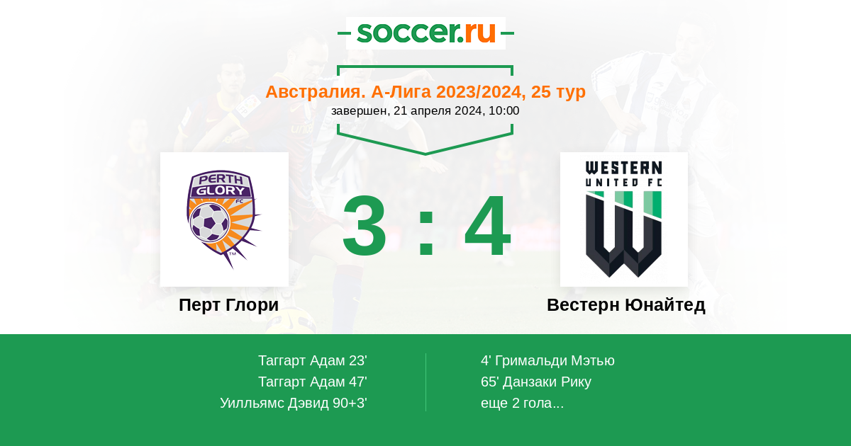 Протокол матча Перт Глори против Вестерн Юнайтед