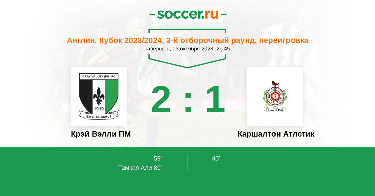 Протокол матча Крэй Вэлли ПМ против Каршалтон Атлетик