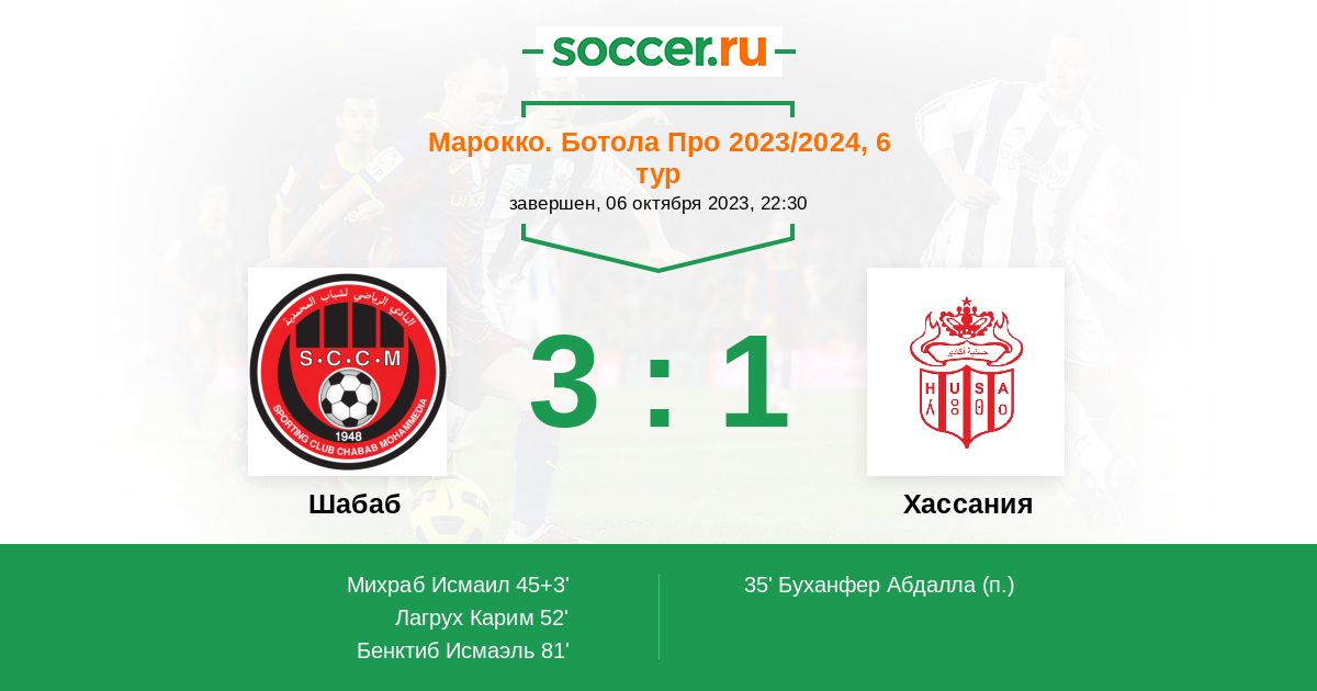 Протокол матча Шабаб против Хассания