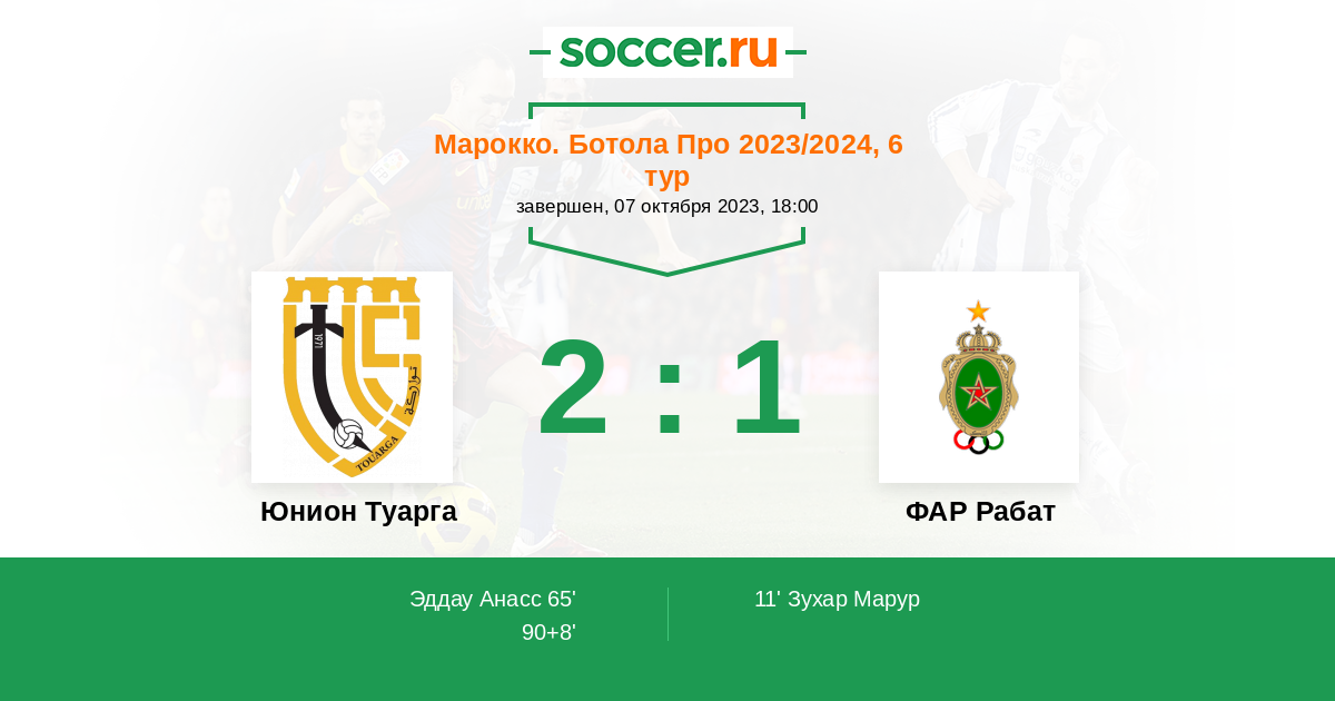 Протокол матча Юнион Туарга против ФАР Рабат