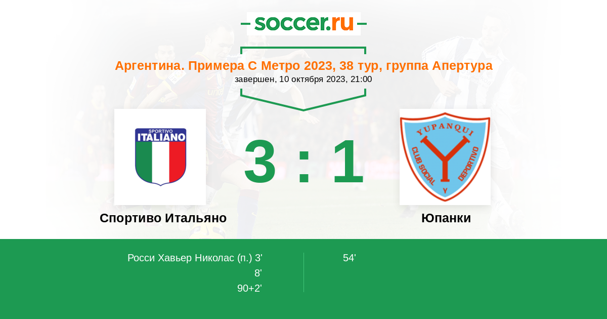 Протокол матча Спортиво Итальяно против Юпанки