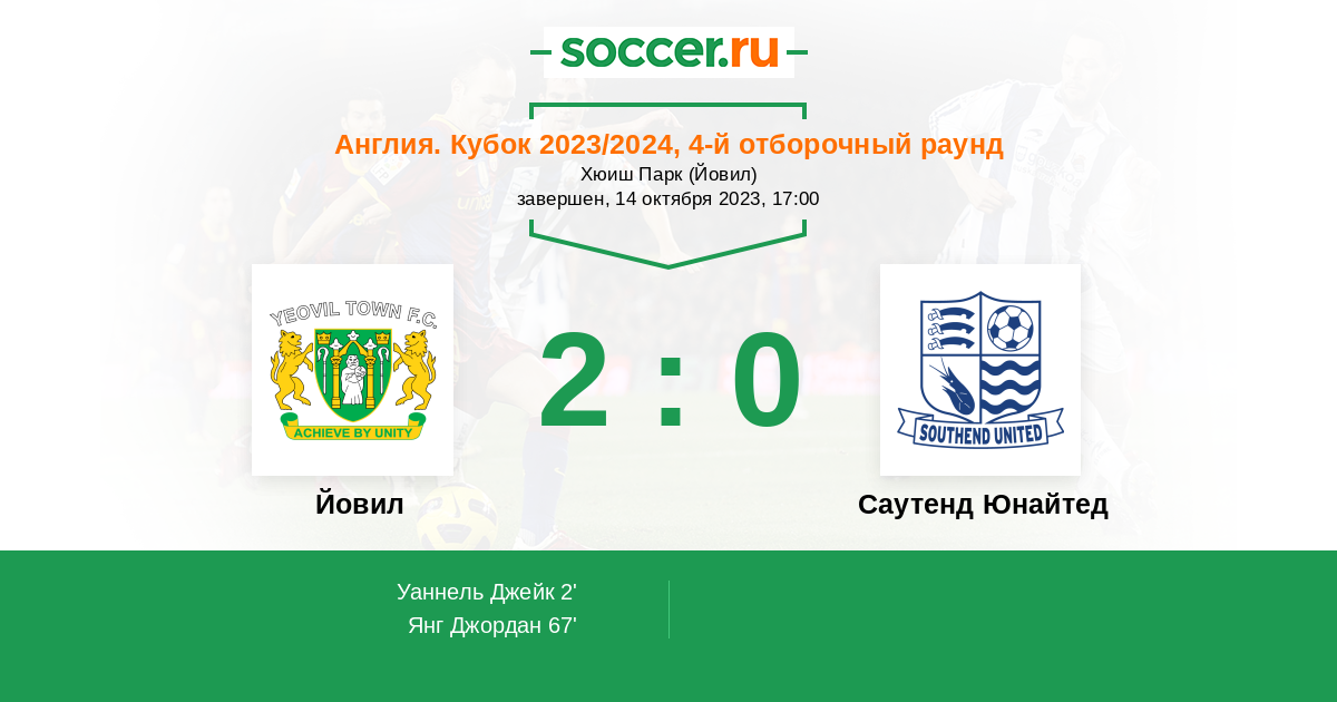 Протокол матча Йовил против Саутенд Юнайтед