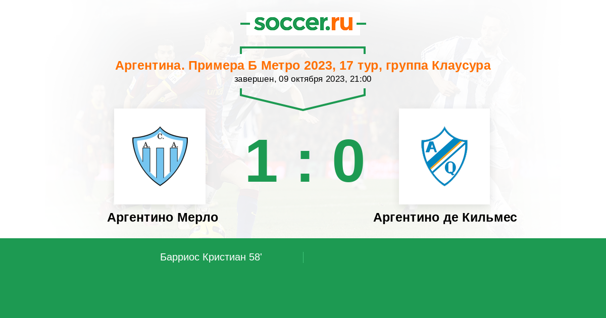 Протокол матча Аргентино Мерло против Аргентино де Кильмес