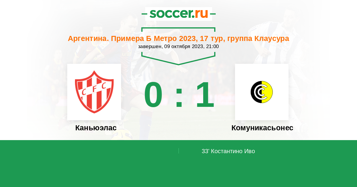 Протокол матча Каньюэлас против Комуникасьонес