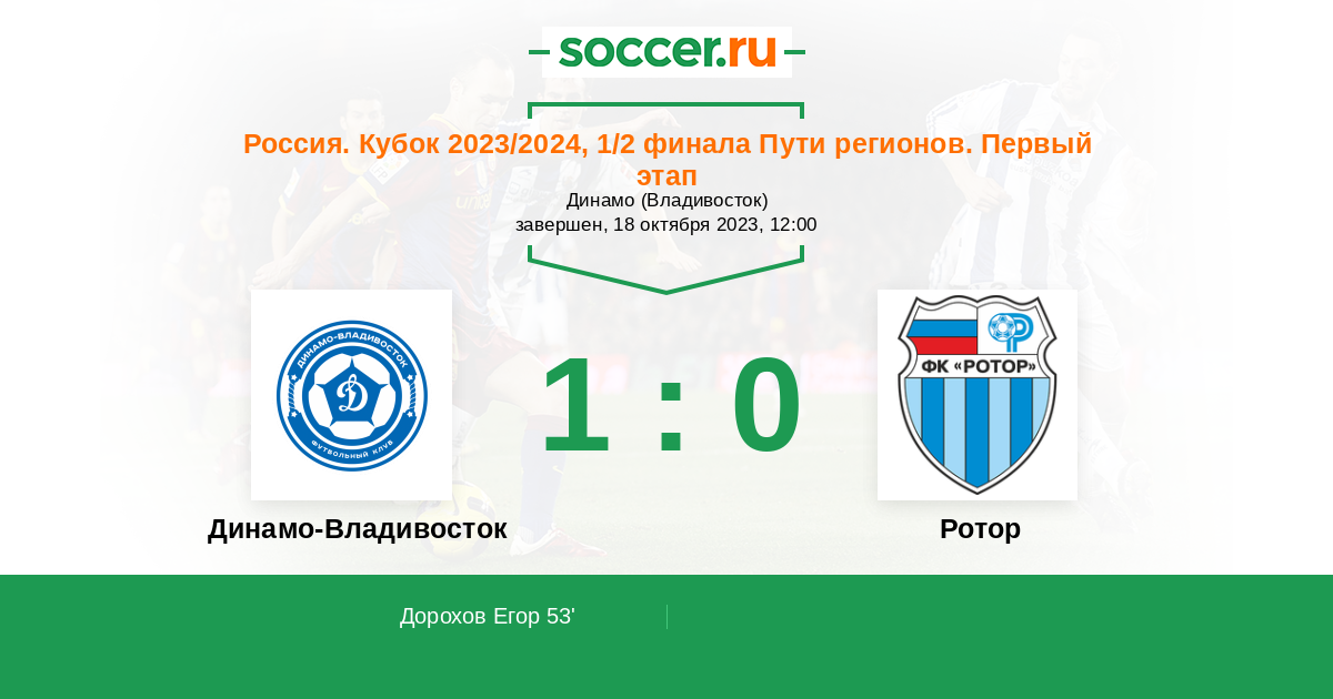 Протокол матча Динамо Владивосток против Ротор