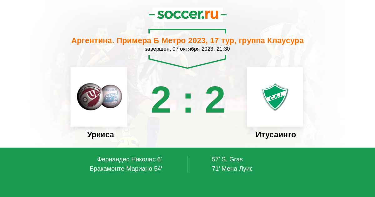 Протокол матча Уркиса против Итусаинго