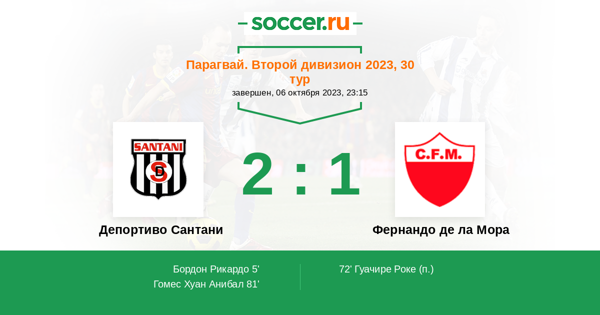 Протокол матча Депортиво Сантани против Фернандо де ла Мора