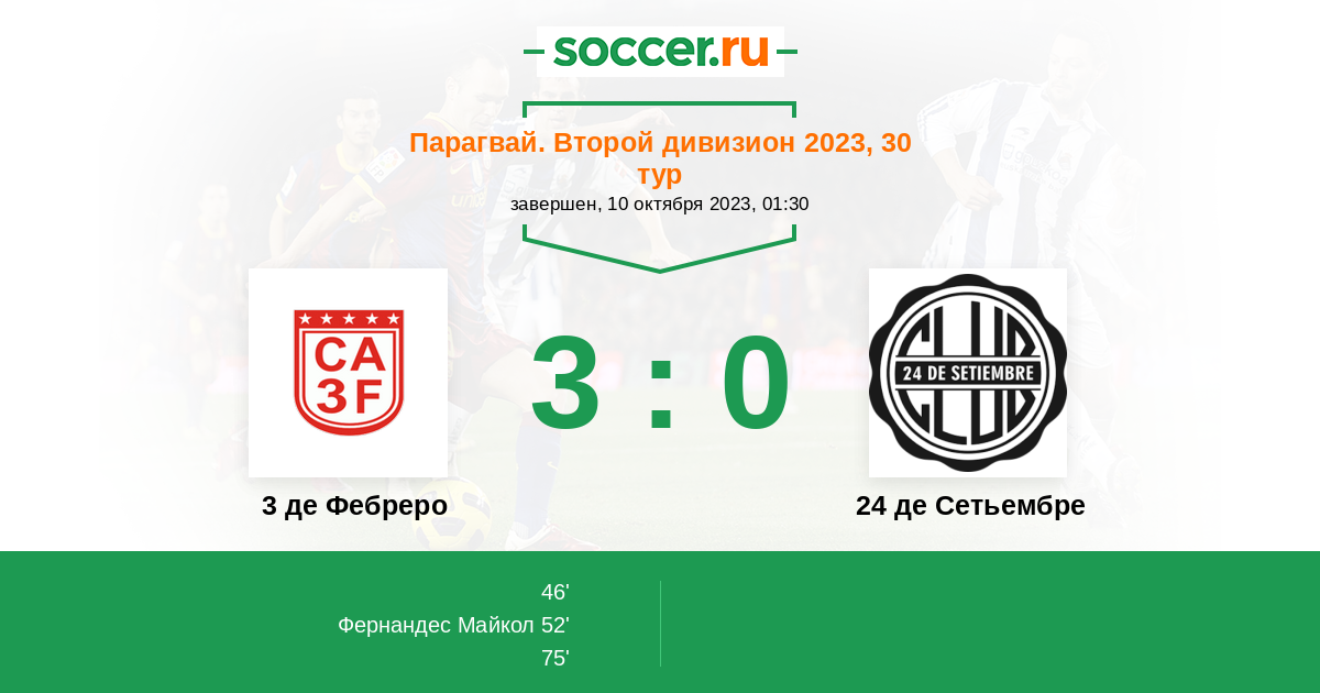 Протокол матча 3 де Фебреро против 24 де Сетьембре