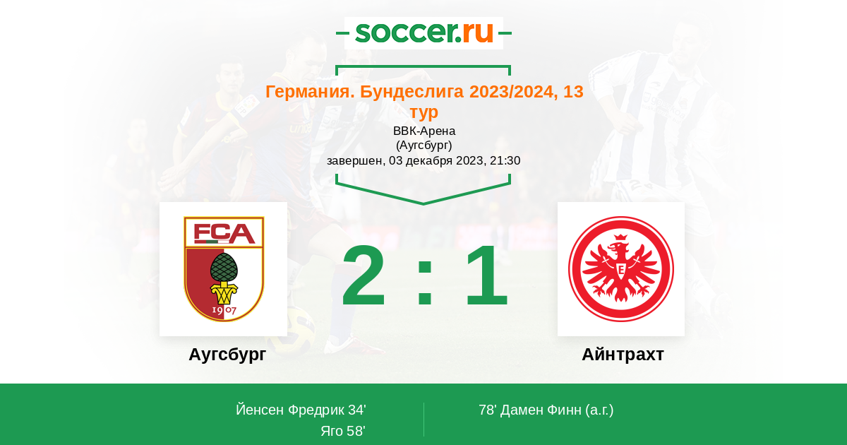 Протокол матча Аугсбург против Айнтрахт