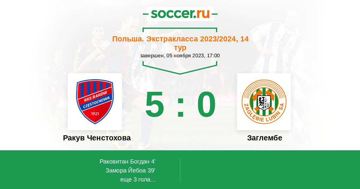 Протокол матча Ракув Ченстохова против Заглембе