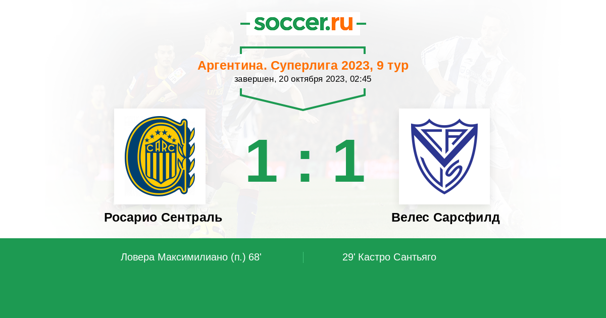Протокол матча Росарио Сентраль против Велес Сарсфилд