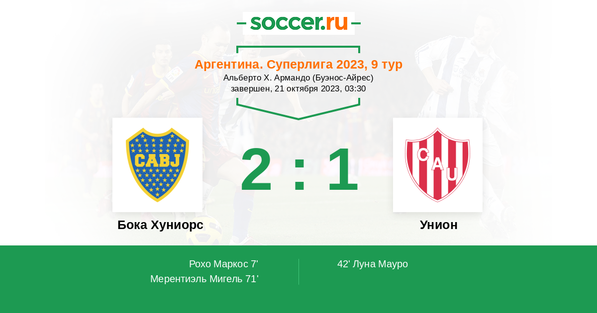 Протокол матча Бока Хуниорс против Унион