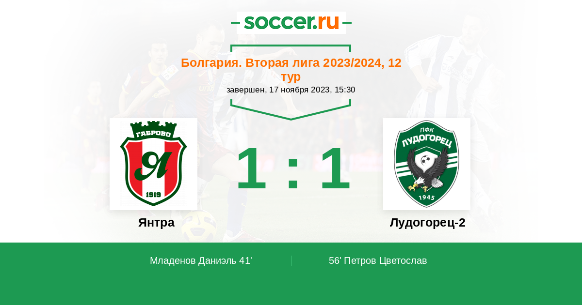 Протокол матча Янтра против Лудогорец-2