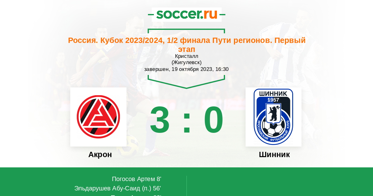 Протокол матча Акрон против Шинник