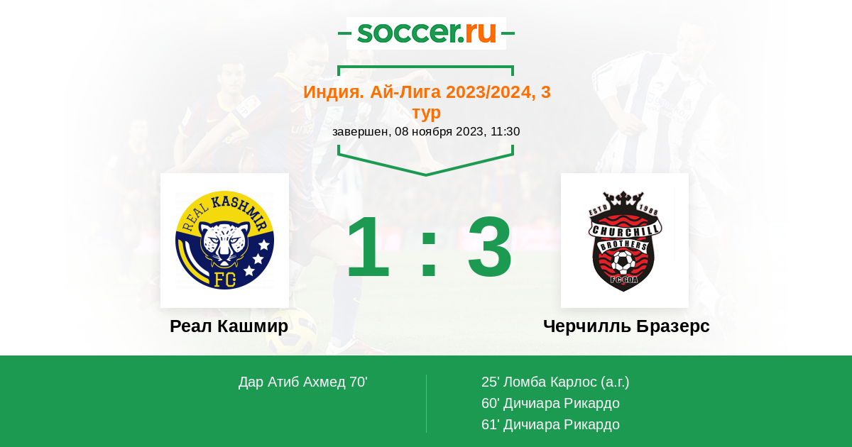 Протокол матча Реал Кашмир против Черчилль Бразерс