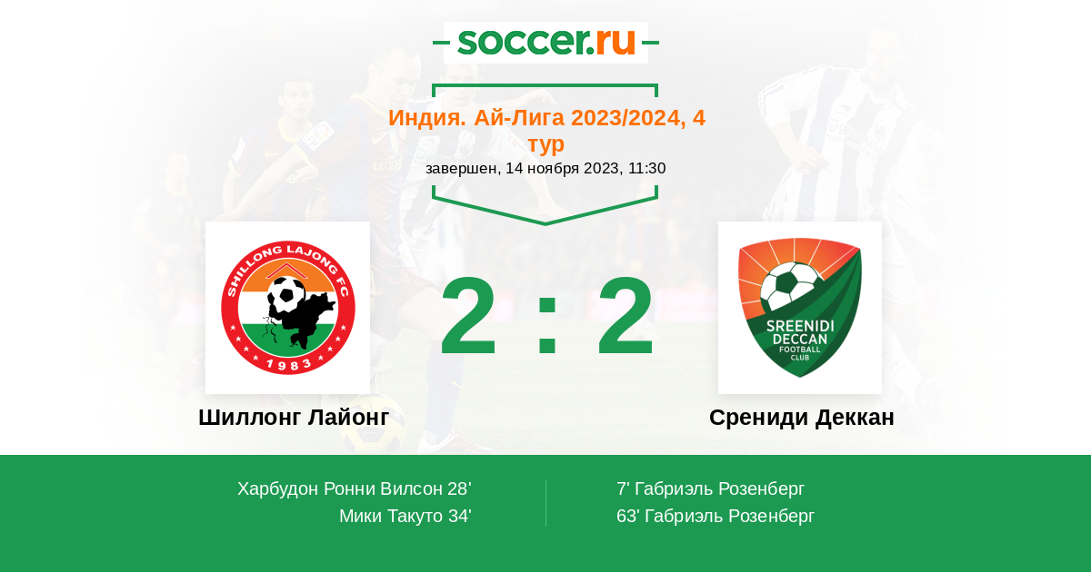Протокол матча Шиллонг Лайонг против Срениди Деккан