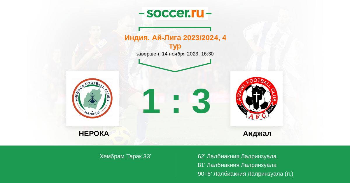 62' (1:1) Лалбиакния Лалринзуала (18)