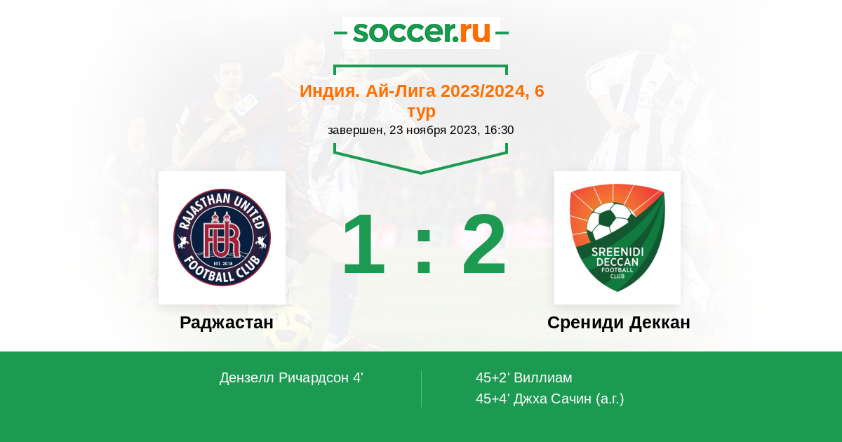 Протокол матча Раджастан против Срениди Деккан