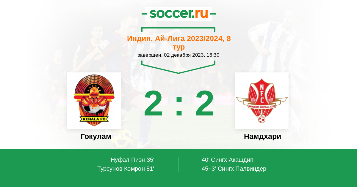 45+3' (1:2) Сингх Палвиндер (14) (Сингх Сандип (11))