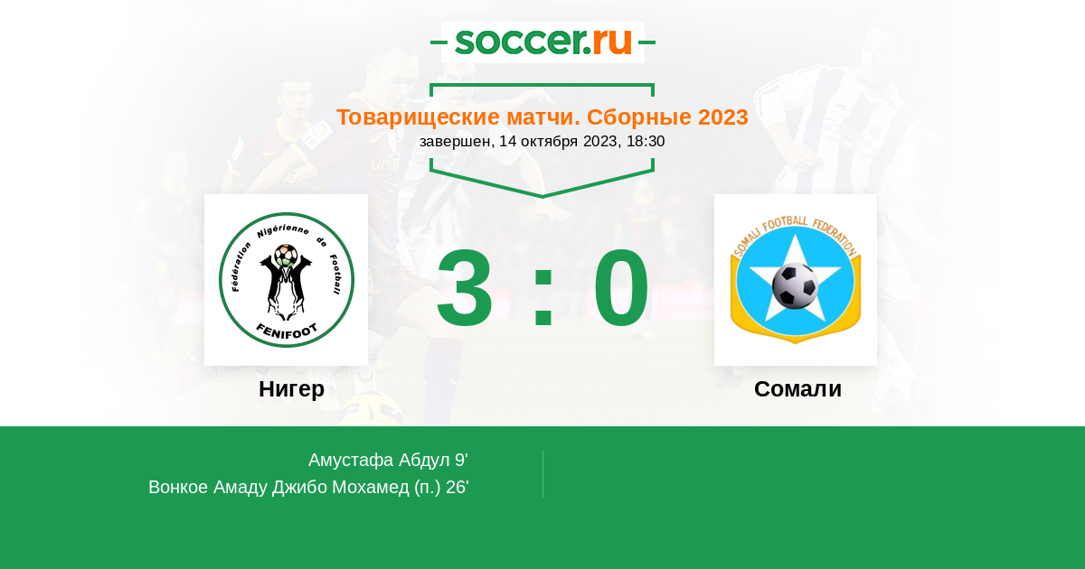 Протокол матча Нигер против Сомали