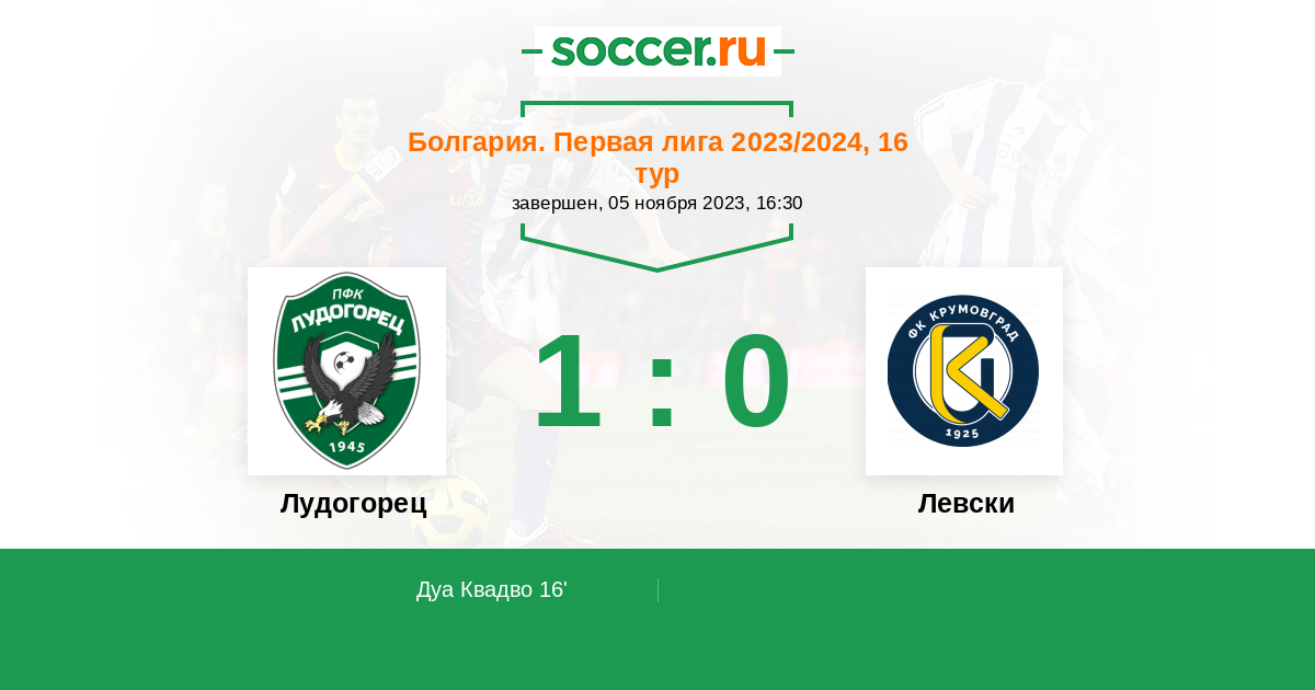 16' (1:0) Дуа Квадво (9) (Делев Спас (90))
