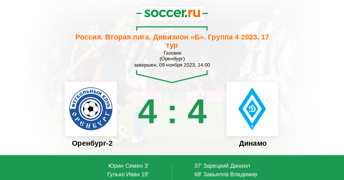 Протокол матча Оренбург-2 против Динамо Барнаул