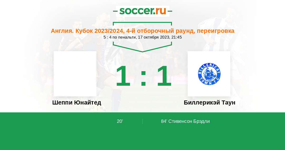 Протокол матча Шеппи Юнайтед против Биллерикэй Таун