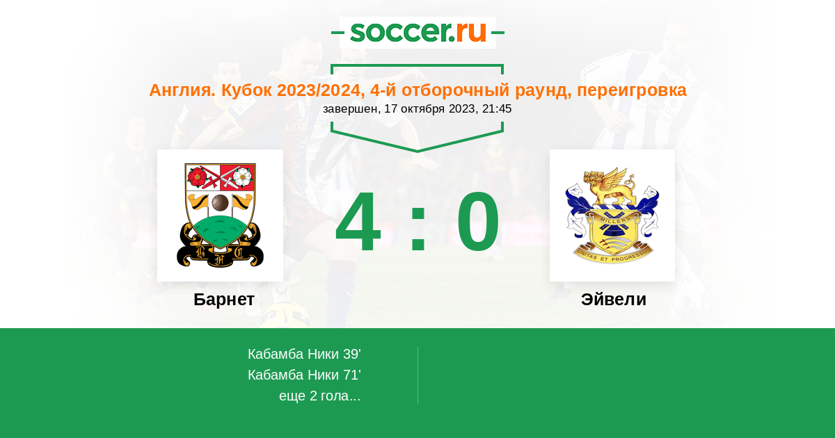 Протокол матча Барнет против Эйвели