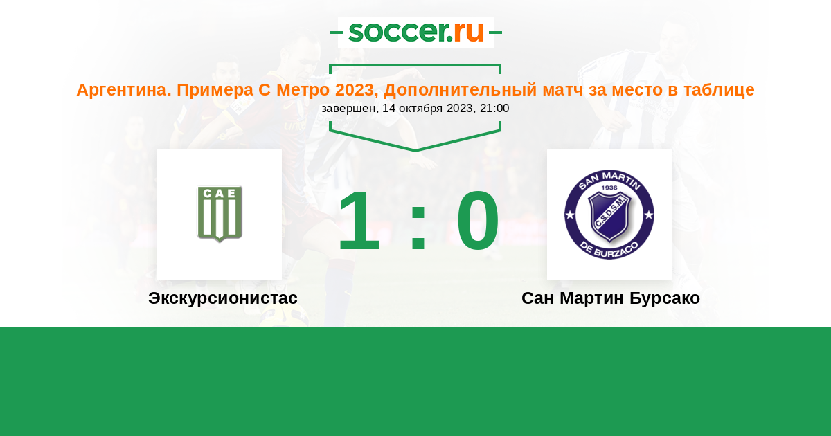 Аргентина. Примера С Метро 01.10.2022 Экскурсионистас Логотип футбольный клуб Экскурсионистас (Буэнос-Айрес) 1:0 Логотип футбольный клуб Сан Мартин Бурсако Сан Мартин Бурсако