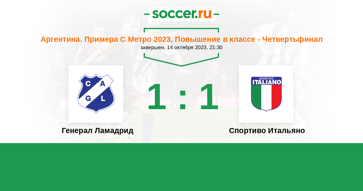История матча Генерал Ламадрид против Спортиво Итальяно