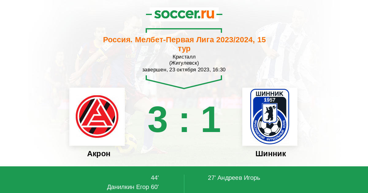 Протокол матча Акрон против Шинник