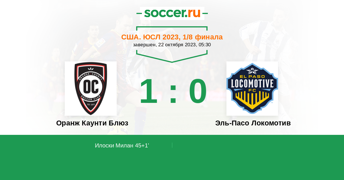 Протокол матча Оранж Каунти Блюз против Эль-Пасо Локомотив