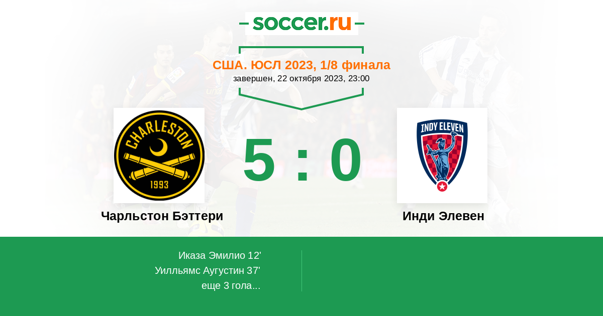Протокол матча Чарльстон Бэттери против Инди Элевен