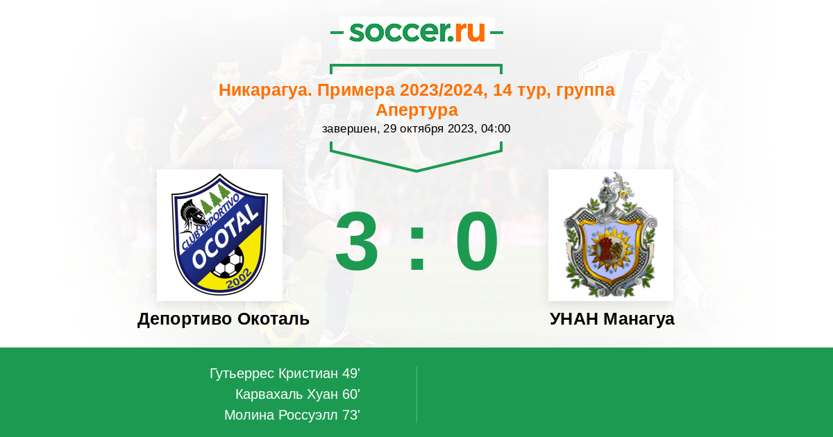 Протокол матча Депортиво Окоталь против УНАН Манагуа