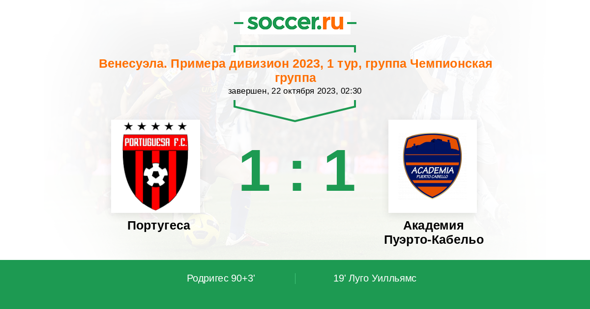 Протокол матча Португеса против Пуэрто-Кабельо