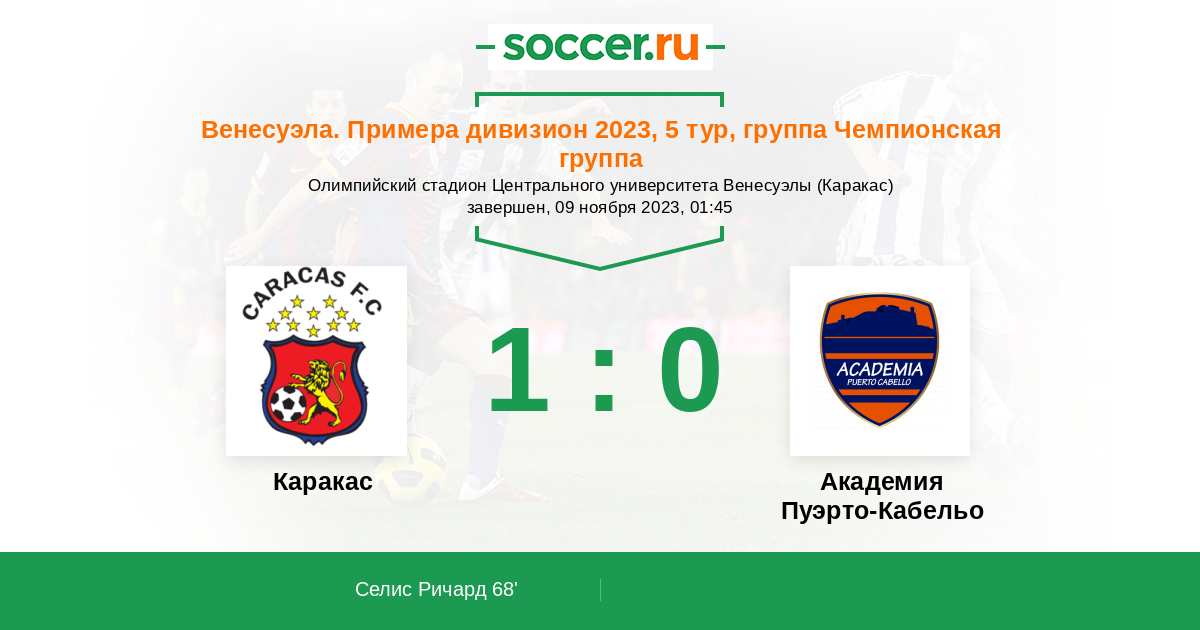 Протокол матча Каракас против Пуэрто-Кабельо