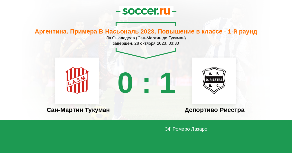 Протокол матча Сан-Мартин Тукуман против Депортиво Риестра