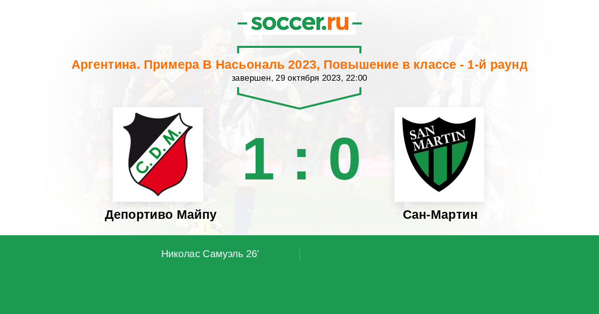 Протокол матча Депортиво Майпу против Сан-Мартин