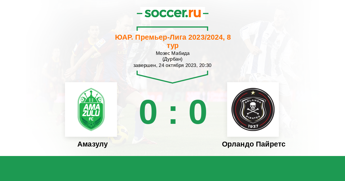 Протокол матча Амазулу против Орландо Пайретс