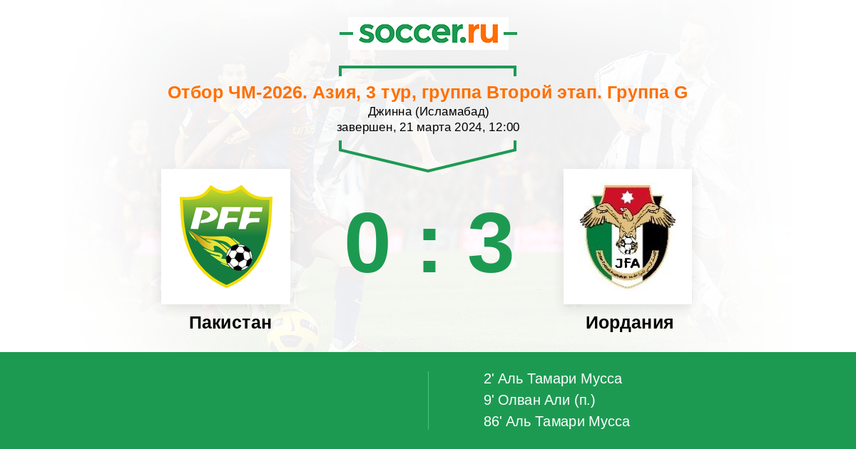 Протокол матча Пакистан против Иордания