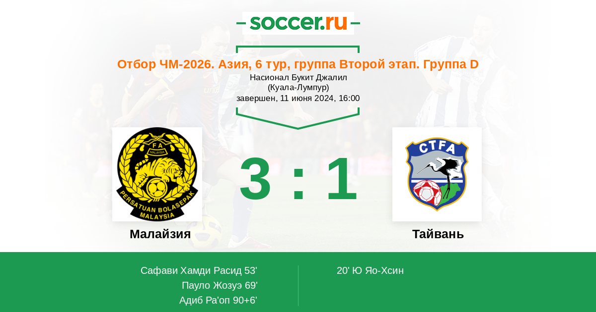 Протокол матча Малайзия против Тайвань