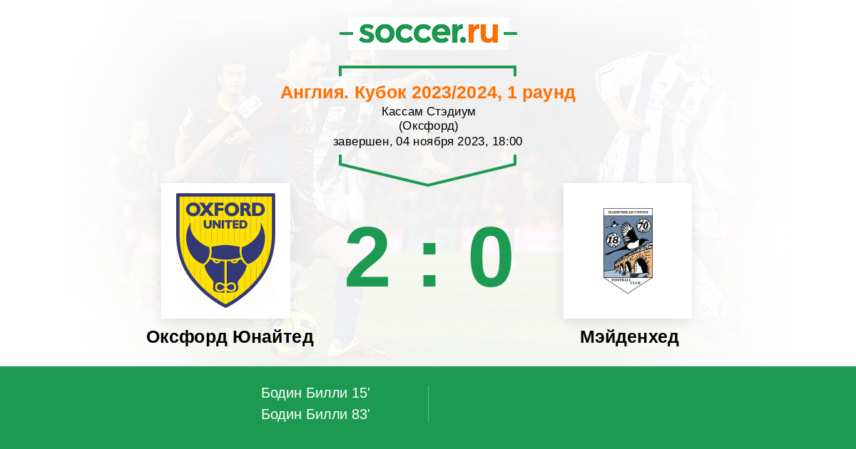 Протокол матча Оксфорд Юнайтед против Мэйденхед