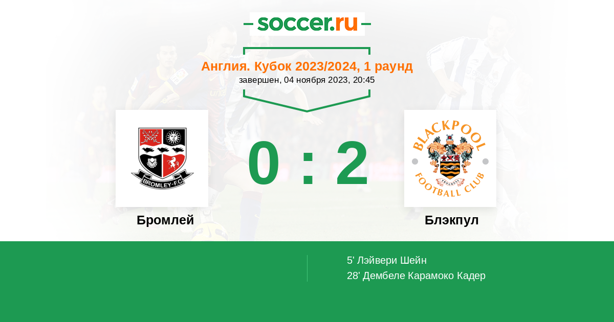 Протокол матча Бромлей против Блэкпул