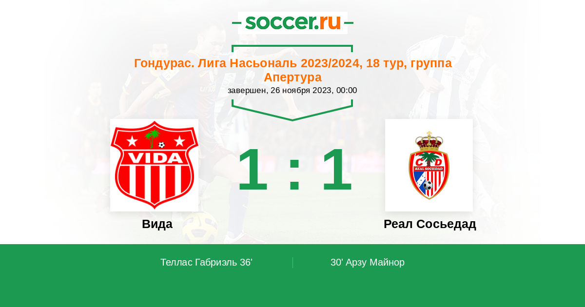 Протокол матча Вида против Реал Сосьедад