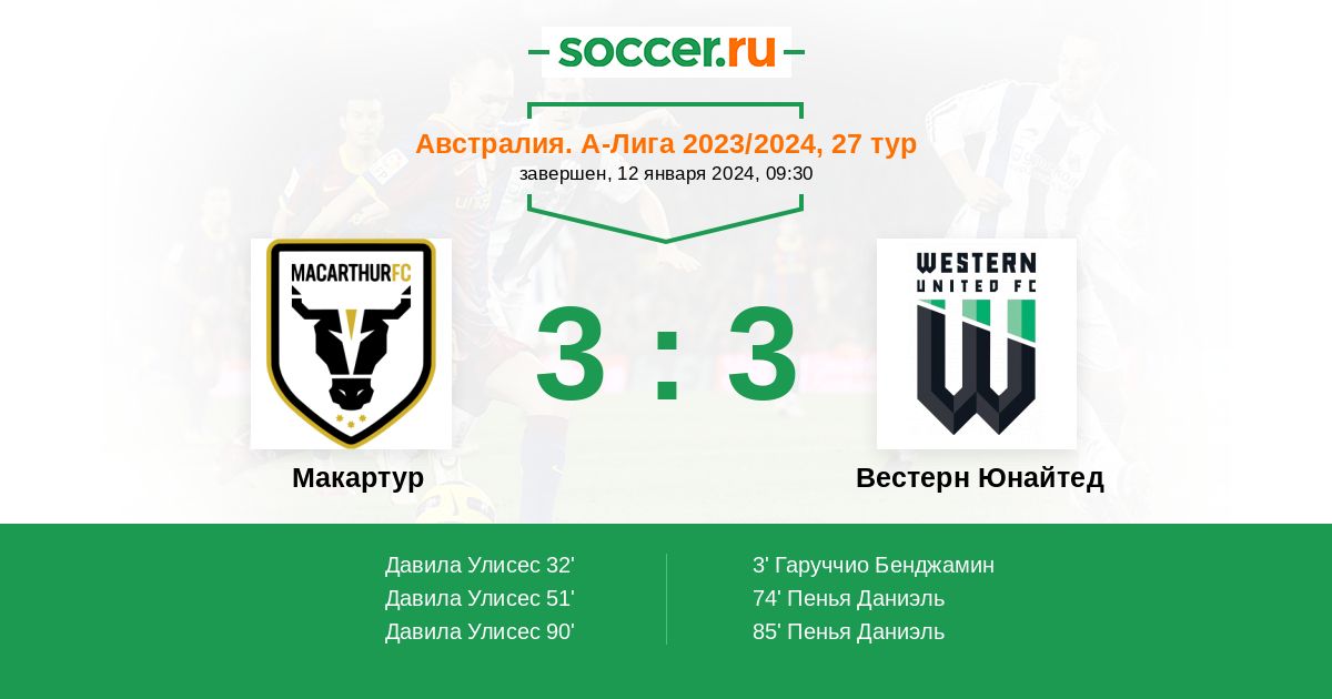 32' (1:1) Давила Улисес (10) (Адамсон Кили (20))