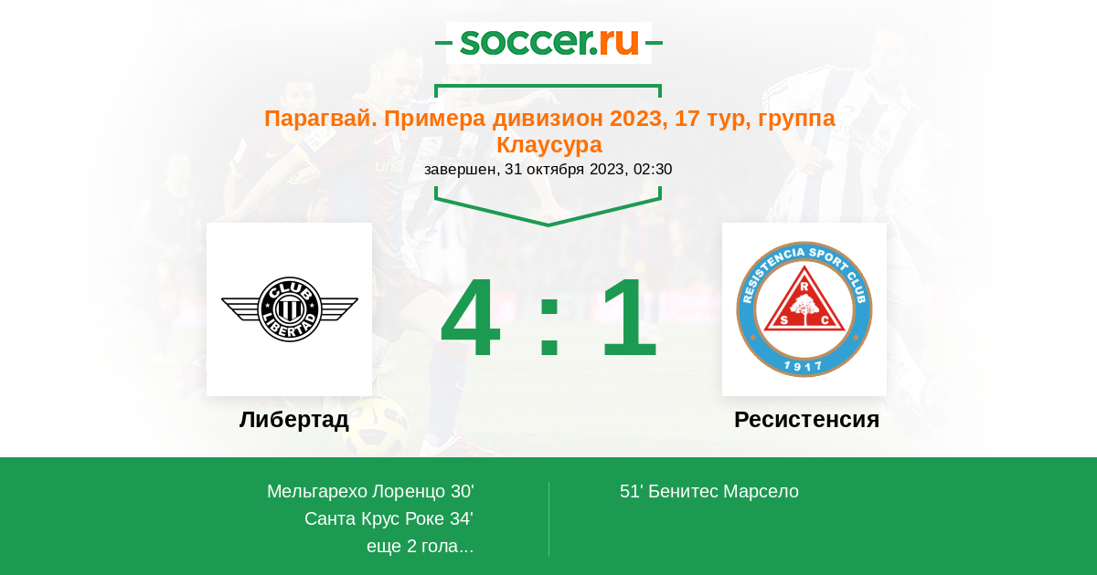 Протокол матча Либертад против Ресистенсия