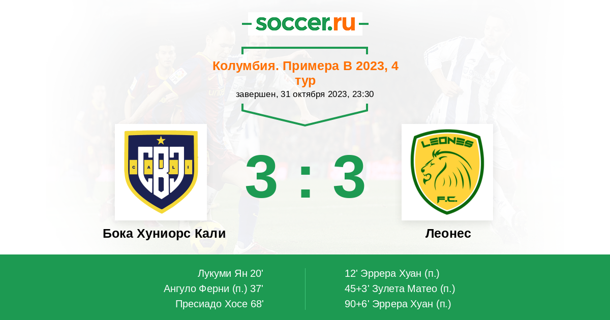 Протокол матча Бока Хуниорс Кали против Леонес