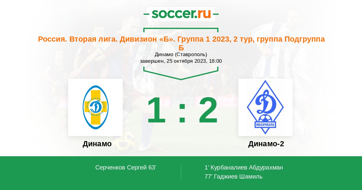 Протокол матча Динамо Ставрополь против Динамо-2